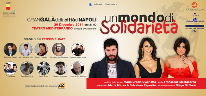 Tutti i bambini hanno diritto a crescere in un clima di uguaglianza e di pari opportunità e a condurre una vita soddisfacente nel rispetto delle scelte e delle identità individuali, anche in presenza di disabilità. Quando la diversità attiene a varie appartenenze culturali e religiose, la base dell'idea è stimolare i bambini e le famiglie a un confronto basato sul rispetto reciproco. Promuovendo contesti di integrazione autenticamente in ascolto dei bisogni individuali di tutti i bambini, il progetto offre la possibilità di sperimentare atteggiamenti di attenzione e di rispetto fin dalle prime esperienze di socializzazione. L'Associazione "Raggio di Sole" da anni si prefigge di intervenire attivamente per aiutare, migliore, i bambini che si trovano in precarie situazioni di salute e gravi difficoltà economiche o che siano privi di assistenza morale o materiale, in tutti quei casi di bisogno nei quali è necessario l'intervento di terzi per cercare di alleviare l'altrui sofferenza. Per l'acquisto dei biglietti, il cui ricavato andrà completamente in beneficenza: www.boxol.it/eventi/2014/12/20/un-mondo-di-solidariet-teatro-mediterraneo-napoli. |