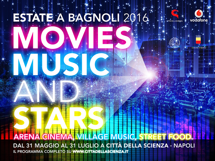 L'estate 2016 a Città della Scienza è basata su un programma di intrattenimento cinematografico rivolto a tutti, nel classico contesto futuribile della struttura. Musica e cultura e tanta innovazione, per divertirsi, osservare e, se si vuole, "fare": infatti tra le novità dell'Estate vi è lo "spazio makers", un'area attrezzata con stampanti 3D e rivolta ad artisti, makers e creativi. Altra novità è l'apertura del Villaggio della Dieta Mediterranea, un'area che si svilupperà "in progress", immersa nella grande cornice di Bagnoli. Ma al centro dell'Estate vi è senza dubbio la ricca rassegna cinematografica dal titolo "Movies Music and Stars". La rassegna, realizzata in partnership con Vodafone Italia, patrocinata da AGIS e dal Comune di Napoli, è inserita nell'"Estate a Napoli" coordinata dall'Assessorato alla Cultura e al Turismo del Comune; vede la direzione artistica di Nicola Grispello e il coordinamento organizzativo di Valeria Aiello; e vuole essere un nuovo contributo di Città della Scienza per offrire un'estate bella, divertente ed intelligente; un momento di tempo libero ma anche di approfondimento culturale. Vodafone Italia sostenendo questa iniziativa, conferma la centralità di Napoli nella propria strategia di business che si declina attraverso la realizzazione di progetti che creano valore per il territorio ed investimenti nello sviluppo delle reti di nuova generazione, il 4G e la fibra. Non da ultimo, va ricordata la collaborazione con AlmaFlegrea, il nuovo ristorante di Città della Scienza con la sua brasserie, la più grande di Napoli. A partire dal 31 maggio, dal venerdì alla domenica nei mesi di giugno e luglio, a partire dalle ore 19.30 fino alle 2.00 Città della Scienza accoglierà il suo pubblico nel villaggio della dieta mediterranea, con ben 4 anteprime cinematografiche nazionali e circa 30 film di repertorio, nella grande Arena all'aperto che verrà inaugurata per l'occasione. La formula della rassegna vuole avvicinare il pubblico al grande cinema e prevede incontri con protagonisti dei film proiettati, ma anche con personalità del mondo del calcio, della scrittura, della musica, della scienza e della tecnologia. Inoltre, caratteristica dell'Estate è la presenza delle postazioni dedicata alle stelle, per perdersi nell'infintamente grande, guardare le stelle e per i più curiosi imparare a conoscere le costellazioni con i nostri astronomi. Altra interessante innovazione dell'Estate 2016 sarà la possibilità di fabbricare il proprio oggetto del cuore, grazie al grande spazio makers che Città della Scienza metterà a disposizione di tutti. Il Villaggio aprirà alle 19,30 per gustare insieme l'aperitivo e proseguire, dopo il film serale, con musica dal vivo e street food, secondo l'offerta di AlmaFlegrea, sino alle 2.00. |