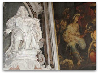 Nel cappellone destro dedicato a Sant'Anna vi sono tele di Andrea Vaccaro e Giacomo Farelli. Nell'annesso collegio vi era un conservatorio per fanciulli poveri i quali indossavano un abitino di colore turchino ed è appunto da tale cromia che nasce il titolo della Chiesa. In esso si formarono tra gli altri, Alessandro Scarlatti, Gian Battista Pergolesi e Giovanni Paisiello.