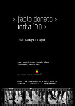 Con India' 70, questo il titolo della personale a cura di Pasquale Lettieri e Isabella Valente (vernissage giovedì 6 giugno 2013 alle ore 19.30 - in programma fino al 3 luglio), l'artista, docente all'Accademia di Belle Arti di Napoli, ripresenta la mostra che quarant'anni fa lo fece conoscere al grande pubblico. Nel 1971 in molti affollarono la libreria Guida a Port'Alba, incuriositi dalla stravolgente e peculiare visione che Donato volle dare di quel Paese raggiunto dopo un avventuroso itinerario on the road. La sua idea di arte e di fotografia destò stupore e alimentò polemiche inevitabili, frutto, forse, dell'incapacità all'epoca di comprendere il suo messaggio innovativo e la sua sperimentazione nel campo della fotografia e nel reportage.