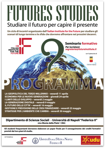 Giovedi 24 aprile alle ore 15.00, presso il Dipartimento di Scienze Sociali dell'Università "Federico II", in vico Monte della Pietà 1, si terrà il convegno dal titolo "Economia per le nuove generazioni" al quale prenderà parte l'Assessore ai Giovani del Comune di Napoli, Alessandra Clemente. L'incontro si inserisce nell'ambito della rassegna "Futures Studies - Studiare il futuro per capire il presente", a cura dell'Italian Istitute for the Future per porre l'attenzione sugli scenari e le sfide che la società contemporanea dovrà affrontare nei prossimi decenni. |
