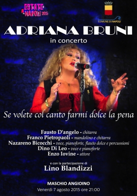 La canzone napoletana rivista e corretta dalla figlia de "La Voce di Napoli". Un percorso interpretativo multiforme, che nasce nel '500 ed arriva al '900. Adriana Bruni ripercorre la strada della vera tradizione partenopea, forte del notevole bagaglio di esperienza acquisito sulle scene accanto al padre Sergio Bruni. Serata unica. Da non perdere.