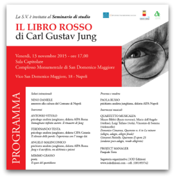 Introduce Nino Daniele, assessore alla cultura e al turismo; intervengono Antonio Vitolo, psicologo analista junghiano, didatta AIPA Roma, Ferdinando Testa, psicologo analista junghiano, didatta CIPA Catania, Angelo Malinconico, psichiatra analista junghiano, didatta AIPA Roma, Mimmo Grasso, poeta, Paola Russo, psichiatra analista junghiana, didatta AIPA Napoli.