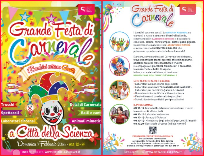 E ancora, come ogni festa di Carnevale che si rispetti, travestimenti per grandi e piccoli, sfilate in costume, addobbi, musical, tante maschere e trucchi e degustazione di dolci tipici di Carnevale.