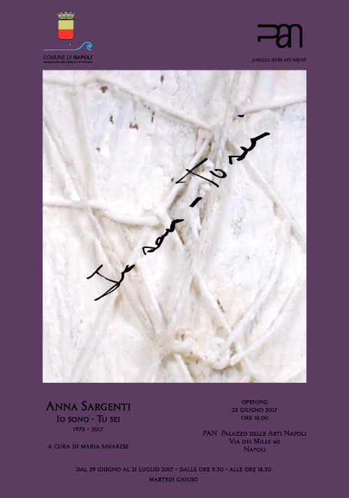 Si inaugura mercoledì 28 giugno 2017 alle ore 18 al PAN| Palazzo delle Arti di Napoli, Io sono - Tu sei. 1975-2017, oltre 40 anni di attività artistica di Anna Sargenti.