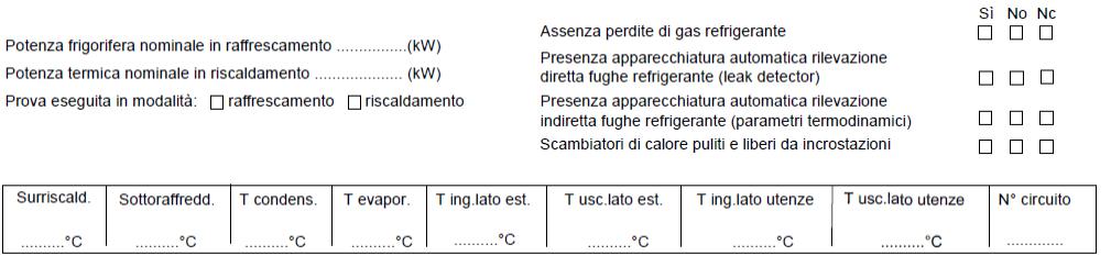 Secondo quanto indicato nelle FAQ pubblicate sul sito del Ministero dell’Ambiente e della Sicurezza Energetica (MASE) alla pagina https://www.mase.gov.it/energia/efficienza-energetica/modelli-per-libretto-impianto-e-rapporto-efficienza-energetica/domande-frequenti, nel caso degli impianti con macchine frigorifere/pompe di calore, degli impianti alimentati da teleriscaldamento e degli impianti cogenerativi, in assenza di norma tecnica di riferimento, al momento è consentito provvedere a “redigere e sottoscrivere il RCEE senza effettuare il controllo del sottosistema di generazione”, non compilando pertanto, della sezione E, i campi sottoindicati: