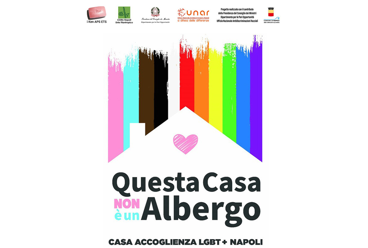 · “Questa Casa non è un Albergo – Rainbow Center Napoli”, gestita da i Ken APS – ETS (capofila del progetto) e CORA EF, affidatari delle attività inerenti “l’Avviso pubblico per la selezione di progetti per la costituzione di centri contro le discriminazioni motivate da orientamento sessuale e identità di genere”, indetto dalla Presidenza del Consiglio dei Ministri–Ufficio UNAR, e realizzate presso un bene confiscato del Comune di Napoli intitolato “a Silvia Ruotolo ea tutte le vittime innocenti della mafia.