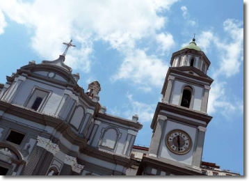 We arrived to the square of Sanità [Sanità means Health]; this name was brought to this valley hill for this beneficial air or from many miracles obtained on the graves of saints buried in their adjacent crypts. Here, lies the big basilica of Santa Maria della Sanità, under which there's the catacomb of St. Gaudioso. This holy bishop of Abitinia, expelled from Africa, came in Naples with St. Quodvultdeus, Primate of Carthage, and other African exiled...