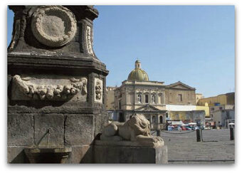 Through Corso Garibaldi we reach Piazza Nolana where, in front of the famous and homonymous "Porta", commissioned by Ferrante of Aragon, the 17th century Church of Saints Cosma and Damiano is located, completely remade in 1852 further to the widening of Corso Garibaldi.