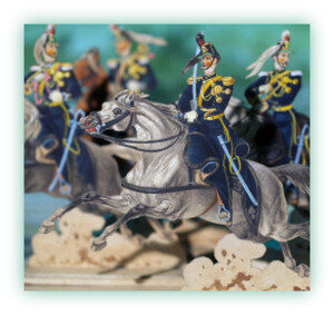 The Piedmontese army which break in the Kingdom of the Two Sicilies is formed by about 500 little moulded aquarelles: bersaglieri, lancers, corazzieri (carabinieres members of the presidential guard of honour) on horses and dreaded Voloire batteries, the historical Piedmontese artillery regiment which destroyed Gaeta's citadel. The toysoldiers were assigned to young princes of the Court and astonish the scholars of military costume for their refined and wealth of details miniature technique that characterize the uniforms of several corps. The extraordinariness of these aquarelles is determined by the wealth of details, brightess and the verydetailed characterization of soldiers and officers. Each toy soldier is a unique piece with its individual physiognomy: from the large battalion of bersaglieri to very elegant corazzieri of Humbert I, the special corps of Royal Guards.