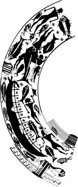 The authors have showned the split over the characters, shipwreck survivors of everytime, lost at the sea. Starting point of research that Marino and Lanzetta suggest it's the famous " Crater of shipwreck" of Museum Pithecusa of Ischia, at Villa Rizzoli , Lacco Ameno council. Terrible images of the ancient vase, of two thousands and seven hundred years, are the jump for modernity: voyage and shipwreck.