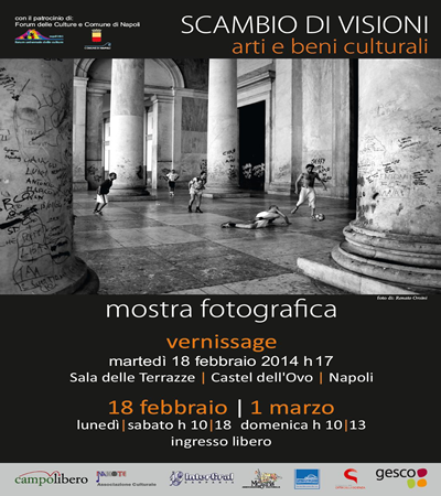 The exhibition "Exchange of Visions/Artand Cultural Heritage" - which will be inaugurated on Tuesday, February 18th at 5.00pm at Casteldell'Ovo- tries to tell the contradictions of the artistic and cultural heritage of our cities, so precious but at the same time so undervalued, appreciated all over the world and under degradation at the same time. The event is promoted by a group of social enterprises "Gesco", with the cultural associations Campo Libero, Megaris and Nakote, the social cooperative Parteneapolis, the Intercral Campania and the Foundation Idis/Città della Scienza, with the moral patronage of the municipality of Naples and the Universal Forum of Cultures.