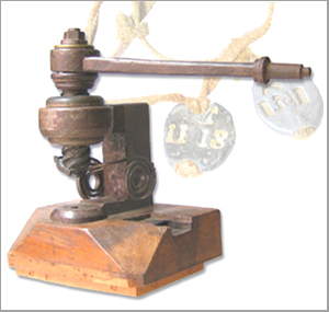 Didascalia dell'immagine: Real Casa Santa dell'Annunziata, fondo degli esposti - Torchio per l'impressione del numero di matricola sulle medagliette assegnate ai bambini ospiti del brefotrofio