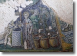 Nei sottarchi ai lati delle finestre sono immagini virili palliate a chiaroscuro in atteggiamento d'offrire corone. Le teste colossali di Cristo e della Vergine son lavoro dei bassi tempi, forse del Tauro. Nel mezzo del pavimento vedesi... l'antica vasca del fonte battesimale.