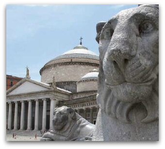 I lavori interrotti alla fine del regno di Murat, vennero ripresi da Ferdinando I di Borbone che bandì un concorso per edificare una Chiesa dedicata a San Francesco da Paola, come ex voto regale per la riconquista del regno. L'incarico venne affidato a Pietro Bianchi e i lavori della chiesa, iniziati nel 1817, furono completati 1846. Edificata ad imitazione del Pantheon di Roma presenta nella cupola, dall'alto e ampio tamburo, l'elemento dominante della intera struttura architettonica. Si accede alla Basilica da un ampio pronao formato da sei colonne e sormontato da un timpano triangolare con al vertice la statua della "Religione", a sinistra la statua di San Francesco da Paola e a destra quella di San Ferdinando di Castiglia.