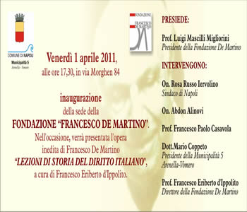 Venerdì 1 aprile sarà inaugurata la sede della Fondazione "Francesco De Martino" in via Morghen 84 presso la sede municipale.