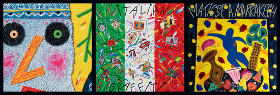 In mostra al PAN, che ha sede nel settecentesco Palazzo Roccella di Carafa, ristrutturato nel XVIII sec. dall'architetto vanvitelliano Luca Vecchioni, anche alcune opere che, a partire dagli anni '80, inducono Donzelli alla rivisitazione delle avanguardie storiche, operazione che si traduce in un codice linguistico affabulatorio e ironico attraverso il quale l'artista ricostruisce l'inventario visuale del Novecento, utilizzando un repertorio di icone, segni, elementi con forte impatto cromatico e materico. Tra esse citiamo almeno l'Atelier Depero del 2001 con quel suo ritorno al futurismo così ironico; il ciclo delle "colazioni"con Colazione da Jim Dine del 1996; una delle opere più note dell'artista Paris Texas del 2005 ( cm 200 x 300); il dissacrante Chef Picasso del 2005, il recente Auto Ritratto del 2012; Italian Graffiti sempre del 2012."