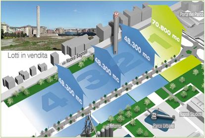 I lotti posti in vendita sono 4, per una superficie complessiva di 64.000 mq e un volume edificabile di 214.700 mc. A differenza delle precedenti gare, si tratta di lotti caratterizzati da un mix funzionale con 80% delle volumetrie destinate al residenziale, a meno del primo, quello più vicino alla Porta del Parco e alla stazione "Agnano" della Cumana, nel quale si è localizzata una maggiore volumetria commerciale