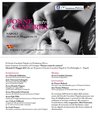 Martedì 21 maggio alle ore 18.00 presso il Circolo Canottieri Napoli si terrà il convegno "Donne contro la camorra", organizzato dalla Fondazione Pol.i.s e il Circolo Canottieri di Napoli con il Patrocinio del Comune di Napoli e della Regione Campania.L'incontro, al quale parteciperà l'Assessore alle Politiche Giovanili del Comune di Napoli, Alessandra Clemente, è l'occasione per trattare, da un lato, del ruolo sempre più importante che la donna assume all'interno di dinamiche criminali e, dall'altro, della risorsa che le donne rappresentano nella lotta alle mafie. A esempio di economia sociale finalizzata a dare lavoro, le atlete della sezione nuoto del Circolo Canottieri presenteranno una linea di abbigliamento in stile africano realizzata in un bene confiscato alla camorra a Castelvolturno. |