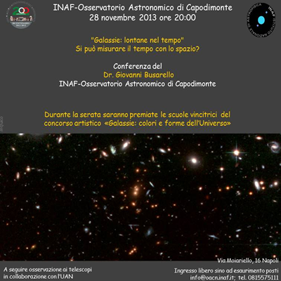 Al concorso hanno partecipato oltre 500 bambini provenienti dall'Istituto Comprensivo "G. Bosco" di Portico di Caserta, dal XXI Circolo Didattico "Mameli Zuppetta" di Napoli dal 55° Circolo Didattico "M. De Vito Piscicelli" di Napoli e Istituto Rossini di Napoli. Il 28 novembre 2013 alle ore 20:00 i lavori saranno esposti in una grande mostra e saranno premiati i primi tre classificati. La conferenza dal titolo "Galassie lontane nel tempo: si può misurare il tempo con lo spazio?" dell'astronomo Giovanni Busarello e le osservazioni ai telescopi suggelleranno questa festa con e per i bambini: perché in fondo una grande scoperta nasce dalla curiosità e dalla fantasia!