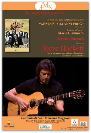 In occasione dell'uscita del libro GENESIS - GLI ANNI PROG Massimo Fargnoli, insieme al suo autore Mario Giammetti, incontra Steve Hackett leggendario chitarrista dei GENESIS, a quarant'anni dall'ultimo concerto della band inglese a Napoli, con la partecipazione del duo chitarristico Notturno Concertante che eseguirà alcune composizioni dei Genesis e di Hackett.
