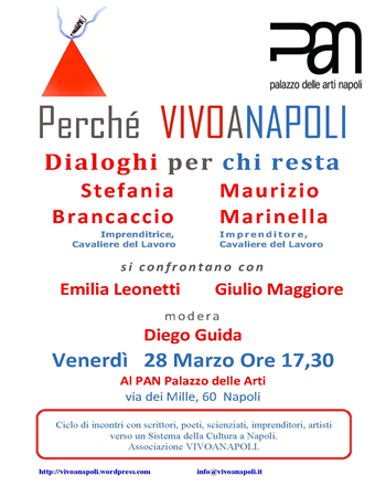 Si chiude con gli imprenditori Stefania Brancaccio e Maurizio Marinella il primo ciclo di incontri "Perché VIVOANAPOLI. Dialoghi per chi resta" organizzato dall'associazione VIVOANAPOLI. Emilia Leonetti e Giulio Maggiore si confronteranno con gli ospiti e Diego Guida farà da moderatore.