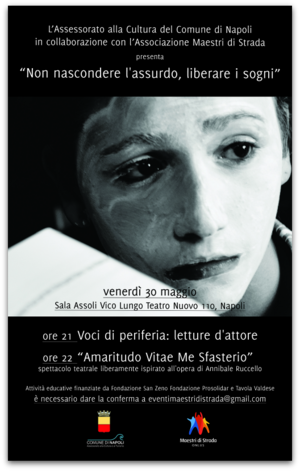 L'Assessorato alla Cultura e al Turismo del Comune di Napoli e l'Associazione Maestri di Strada, con la partecipazione dell'Associazione Trerrote, promuovono,"Città in teatro", un evento teatrale in cui si intende dar voce e spazio ai giovani di periferia e ai loro desideri.