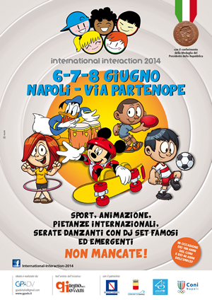 In occasione di "International Interaction 2014 Together for kids" si celebrano il 40esimo anniversario dell'Unicef e il 100esimo del Coni. Lo sport, infatti, ricoprirà un ruolo centrale all'interno della manifestazione. Lezioni di vela, canoa, off shore presso il circolo canottieri Savoia, sono disponibili per tutti i bambini che vogliono scoprire e vivere uno sport di mare. Non mancheranno sport tradizionali come la scherma, la pallavolo, box, arti marziali, giochi tradizionali... lungo il percorso di Via Partenope. L'evento prevede anche il coinvolgimento dei ristoratori di via Partenope: ognuno rappresenterà una nazione straniera proponendo piatti tipici del Paese che ha scelto. Sul Lungomare anche un Villaggio di gonfiabili.