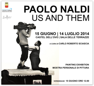 Saranno esposte le opere dell'ultimo ciclo di pittura dell'artista intitolato "Us and Them" (2014) ed una selezione di opere dai vari cicli che hanno caratterizzato la ricerca dell'artista negl'ultimi anni (circa 40 oli su tela e tavola). Paolo Naldi è da molto impegnato in un discorso sull'arte per il sociale e questa mostra è concepita come breve retrospettiva di questo intenso periodo creativo.