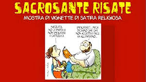 Per questo l'UAAR, Unione degli Atei e degli Agnostici Razionalisti, ha pensato di organizzare questa mostra, raccogliendo alcuni dei migliori esempi recenti e contemporanei di satira religiosa - il che vuol dire indirizzata più spesso sui religiosi che sulle religioni stesse che sono infatti obiettivi decisamente diversi. Nell'esposizione di vignette Sacrosante risate sfilano i nomi più noti dell'umorismo e della satira italiana, con un paio di puntate estere. In nome dell'autonomia del pensiero, del piacere/dovere del confronto, della sfida intellettuale, della necessità del contraddittorio, contro tutte le insofferenze liberticide e - non ultimo sotto l'egida sempre salutare del buonumore. Speriamo condiviso da tutti.