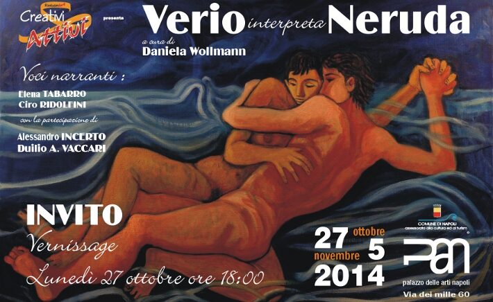 E' questa una delle tante immagini della poeticità di Pablo Neruda, Lo interpreteranno artisti di spessore alla mostra di pittura che si terrà dal 27 ottobre al 5 novembre 2014 al PAN. Canteranno i grandiosi colori di Francesco Verio e le voci narranti, del poeta-attore Ciro Ridolfini, della poetessa-pittrice Elena Tabarro, e degli attori Alessandro Incerto, Teresa Polimei e Duilio A. Vaccari. Tutto curato da Daniela Wollmann. Gli artisti si stringeranno idealmente intorno a Pablo Neruda, il sommo poeta della letteratura latino-americana, nato a Parral il 12 luglio 1904 e spentosi (si fa per dire) a Santiago del Cile il 23 settembre 1973, dopo il golpe di Pinochet. Con gli entusiasmanti quadri di Francesco Verio e le voci narranti degli attori, sui versi del sommo Neruda, sarà sicuramente un accadimento di grande valore per la storia della nostra città, Napoli, in colloquio perenne con la vita e la morte, in un tutt'uno tra opera buffa e commedia, farsa e tragedia, dove tutto si scioglie in musica e canto, in Arte e poesia. Durante l'inaugurazione, il 27 ottobre alle ore 18.00, saranno lette, a commento di taluni dipinti, alcune poesie di Neruda, da "Attori e gente comune". |