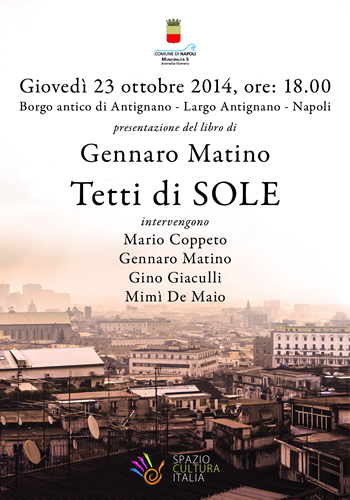 Giovedì 23 ottobre 2014, alle ore 18, presso il Borgo Antico di Antignano - Largo Antignano, Napoli, presentazione del libro di Gennato Matino: "Tetti di sole".