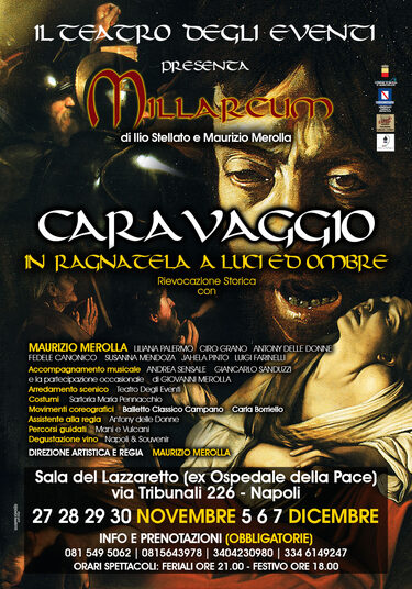 Il Teatro degli Eventi, fa rivivere l'ultimo quadro della Trilogia, dedicato a Caravaggio in una rievocazione storica e, per uno straordinario caso del destino rivive anche la locanda frequentata dal Caravaggio: Il Cerriglio. Sì, proprio in via del Cerriglio n.3 - riapre la storica locanda conosciuta e frequentata, nel corso dei secoli, da artisti, poeti, viaggiatori e squinternati personaggi che hanno arricchito la fantasia e l'immaginario collettivo di figure e stereotipi curiosi e colorati del popolo partenopeo, ma principalmente luogo simbolo del periodo napoletano di Michelangelo Merisi. Come in un quadro vivente, ancora una volta gli autori del progetto Millarcum, portano in scena appunto "Caravaggio, ragnatela a luci e ombre" in un sito monumentale molto suggestivo, della città di Napoli: la Sala del Lazzaretto dell'Ex Ospedale Pace.