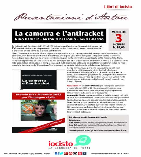 attualmente Assessore alla Cultura e al Turismo a Napoli), Antonio Di Florio (Capitano dell'Arma dei Carabinieri) e Tano Grasso sara' presentato