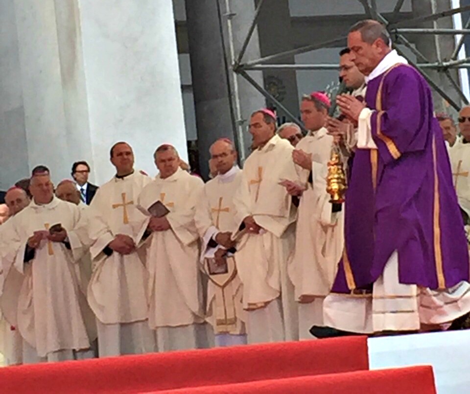 Il momento dello scioglimento del sangue di San Gennaro nelle mani di Papa Francesco