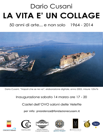 La vita è un collage... 50 anni di arte e non solo è il titolo della personale di Dario Cusani che dopo 14 anni torna a Napoli, sua città natale, per presentare il percorso e la ricerca del suo lavoro artistico, che inaugurerà sabato 14 marzo dalle ore 17.00 al Castel dell''Ovo presso i saloni delle Velette.