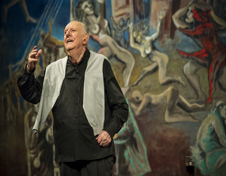 Tra maggio e giugno 2014, presso la sede del Centro di Produzione Rai di Napoli, si è registrato lo spettacolo di Dario Fo "Francesco lu Santo Jullare"; l'artista ha dato la propria disponibilità alla fotografa Anna Camerlingo affinché potesse raccontare con le sue immagini tutte le fasi di preparazione e la messa in scena del suo spettacolo. Ne è scaturito un lavoro in cui viene svelata un'immagine intima e riflessiva dell'artista, le foto testimoniano la fatica di Dario Fo impegnato con i suoi collaboratori nella riscrittura del testo prima di andare in scena, perché questo spettacolo, pur essendo stato scritto più di quindici anni fa dallo stesso Fo con Franca Rame, è un testo in continua evoluzione sempre aggiornato sugli ultimi accadimenti politici e di cronaca, tra l'altro Fo trae molta ispirazione da Papa Francesco, di cui ammira l'operato, riscontrando una similitudine tra San Francesco ed il Papa; proprio in quei giorni Dario Fo aveva appreso dalla lettura dei giornali i coraggiosi moniti del Pontefice sudamericano contro Vescovi e Cardinali troppo spesso sedotti dal denaro e dal potere e per questo Fo aveva deciso di riscrivere tutta la prima parte del suo testo che poi abbiamo visto in prima serata su Rai Uno a fine giugno. Il racconto fotografico testimonia l'incontro tra Dario Fo e Mika, impegnati in un confronto in cui due generazioni lontane si fondono in un pensiero culturalmente stimolante, in quell'occasione Fo ha mostrato a Mika i suoi dipinti, tra i quali anche quelli ispirati al Papa.