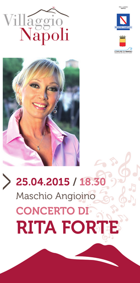 Concerto di Rita Forte, la brava cantante resa famosa dal Tappeto Volante di Luciano Rispoli e si esibirà in un concerto che si terrà il 25 aprile, alle 18.00, al Maschio Angioino, nell'ambito del "Villaggio Napoli" dell'Ente Provinciale per il Turismo.