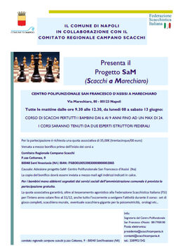 La quota associativa garantirà, oltre al tesseramento agonistico alla Federazione Scacchistica Italiana (FSI) per l'intero anno solare fino al 31/12/2015, anche tutto l'occorrente a svolgere l'attività durante il corso: set di gioco completi, scacchiera murale, eventuale scacchiera gigante per la psicomotricità, orologi etc.