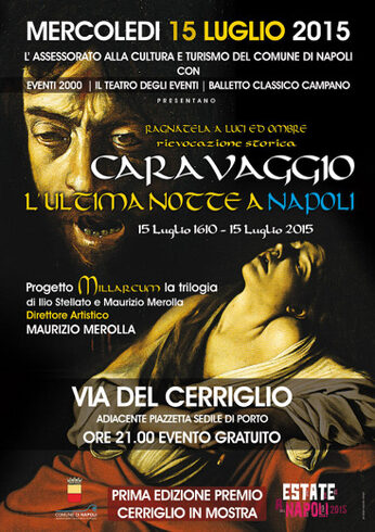 Mercoledì 15 Luglio 2015alle ore 21.00, in occasione dell'anniversario dell' ultima notte trascorsa a Napoli dal Caravaggio, l'Associazione Eventi 2000, il Teatro degli Eventidiretto da Maurizio Merolla e il Balletto Classico Campano- con il Patrocinio e il supporto dell'Assessorato alla Cultura e al Turismodel Comune di Napoli - proporranno in Via del Cerriglio ( interamente pedonalizzata per l'occasione ) la