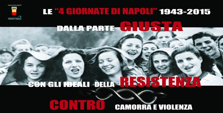 Le Quattro Giornate di Napoli assumono quest'anno un valore particolare anche perché ricadono nel settantesimo anniversario della Liberazione dal Nazi-fascismo e perché i valori che le hanno animate sono quelli a cui riferirsi per unire istituzioni e popolo nella lotta alla camorra ed ai poteri criminali. L'Assessorato alla Cultura del Comune di Napoli, insieme con l'ANPI (Associazione Nazionale Partigiani d'Italia) e con l'Istituto Campano per la Storia della Resistenza Vera Lombardi, ha promosso un programma straordinario di iniziative culturali per inviare un forte ed inequivocabile segnale in tale direzione a tutta la cittadinanza. |
