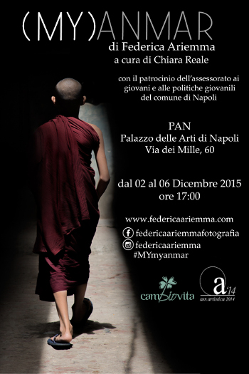 Mercoledì 2 dicembre, alle ore 17.00 sarà inaugurata presso il PAN - Palazzo delle Arti di Napoli (Loft) la personale fotografica di Federica Ariemma dal titolo(My)anmar, a cura di Chiara Reale, con il sostegno dell'Assessorato alla Cultura e al Turismo e dell'Assessorato ai Giovani e Alle Politiche Giovanili, creatività e innovazione del Comune di Napoli.