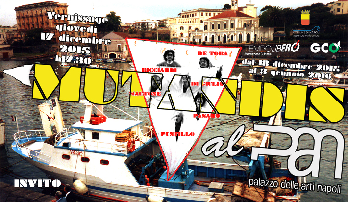 Gianni De Tora, Mario Di Giulio, Michele Mautone, Rosa Panaro, Mario Ricciardi e Nora Puntillo: questi i nomi dei fondatori di "Mutandis", un progetto artistico che oggi, grazie all'Associazione TempoLibero, occuperà la sala Pan del Palazzo delle Arti Di Napoli dal 18 dicembre al 3 gennaio, animando il prestigioso spazio, durante il periodo natalizio.