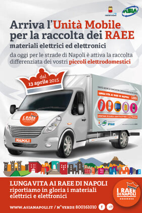 Due nuovi automezzi ed un nuovo servizio sperimentale per andare incontro alle esigenze dei cittadini e rendere più agevole il conferimento dei rifiuti elettronici, altrimenti conferibili solo presso le isole ecologiche. Accompagnerà il progetto una specifica campagna di informazione sia con l'utilizzo dei tradizionali mezzi di comunicazione come il sito internet aziendale, la fan page Facebook ed il canale youtube "La TV Senza Spazzatura", sia con modalità di informazione diretta ai cittadini del territorio interessato con appositi gazebo informativi e distribuzione di volantini e locandine nelle palazzine del centro storico. EnergyMed, la Mostra Convegno sulle Fonti Rinnovabili e l'Efficienza Energetica che si terrà dal 9 all'11 aprile alla Mostra d'Oltremare, sarà ulteriore occasione per lanciare il progetto. Sarà presente, infatti, un automezzo che effettuerà una raccolta straordinaria di RAEE. |