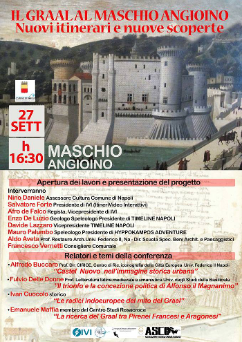 I ricercatori di Ivi, attraverso studi approfonditi, hanno trovato tracce inequivocabili della presenza del Graal al Maschio Angioino. Studi che verranno presentati - in anteprima assoluta - nel corso di un convegno in programma martedì 27 settembre al Maschio Angioino. La manifestazione servirà anche a presentare i nuovi itinerari esoterici e speleologici nel Maschio Angioino.