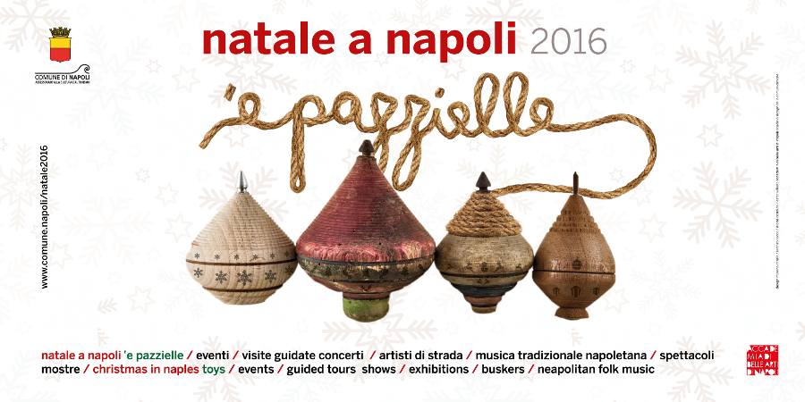 'E pazzielle, i giocattoli tradizionali ed eterni saranno dunque al centro di questo Natale napoletano, accanto ovviamente ai pastori (giocattoli anch'essi del resto, oltre che oggetti di altissimo artigianato) per renderlo unico e nuovo e per aggiungere un'occasione in più per stare insieme, percorrere i vicoli della città, scoprirne i monumenti e le opere d'arte. E come simbolo, lo strummolo, l'antico gioco di strada, radicato nell'immaginario popolare e nel linguaggio figurato napoletano. Lo ritroviamo nella tasca di Luca De Filippo 'o nennillo di Natale in casa Cupiello a cui, ad un anno dalla scomparsa, dedichiamo questo Natale.