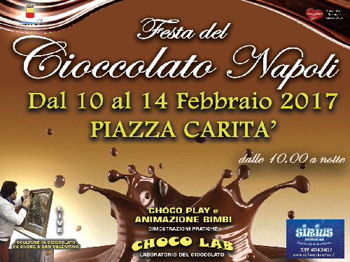 Dal 10 al 14 febbraio 2017 il cuore pulsante di Napoli si immergerà nel Cioccolato. Per quattro giorni la famosa kermesse sul buon cioccolato artigianale che sta sconvolgendo di gusto il Bel Paese sarà presente in Piazza Carità con degustazioni, laboratori, arte, shopping, intrattenimento e sana alimentazione per un'edizione tutta dedicata agli innamorati in onore della festa di San Valentino.