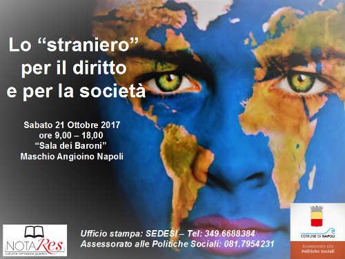 Chi è lo straniero? Come viene considerato all'interno della nostra società? Il convegno "Lo 'straniero' per il diritto e per la società" promosso dall'Assessorato al Welfare insieme all'Ordine dei Notai di Reggio Emilia prova a dare una risposta concreta a queste domande. La Città di Napoli ha da tempo scelto percorsi di inclusione, che garantiscono un'attenta personalizzazione di interventi sociali, nel rispetto dei diritti di ognuno. Scopo dell'iniziativa è discutere di temi attuali, come lo status di rifugiato, la tutela del minore straniero in Italia, i profili di responsabilità penale per i reati commessi e la normativa UE in materia di accoglienza con lo scopo di creare una rete fra figure giuridiche, psicologiche, sociali. L'inclusione presume una dimensione di reciprocità: con i migranti che accogliamo nelle nostre Città, possiamo puntare al co-sviluppo come valore aggiunto alla nostra comunità territoriale. Sono previsti crediti formativi per notai, avvocati e assistenti sociali. |