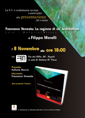 Alla presentazione prenderanno parte, oltre all'autore, Filippo Morelli, ilprof. Francesco Venezia, che farà un breve intervento e l'arch. Raffaele Marone che presenterà il volume.