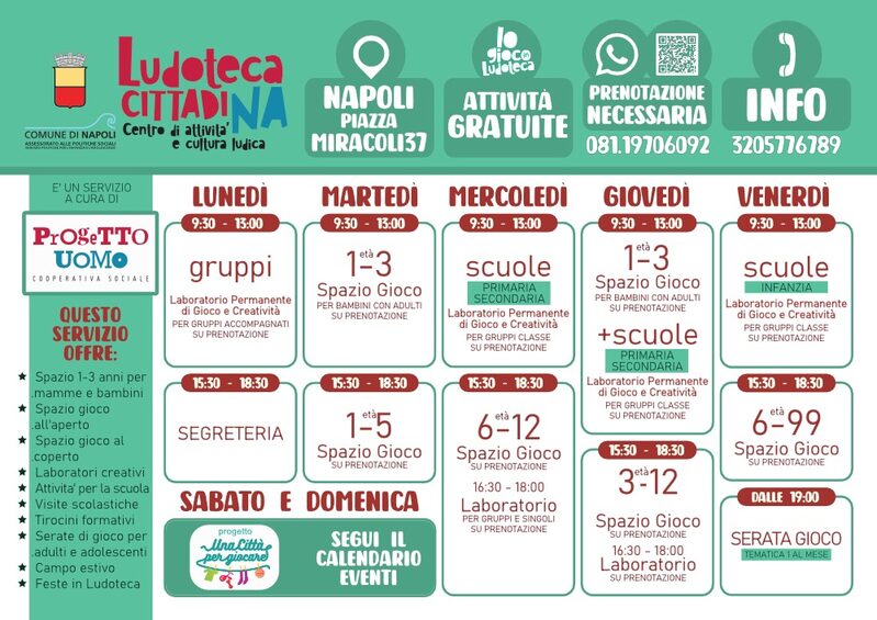 La Ludoteca Cittadina del Comune di Napoli è aperta al territorio ed all’accoglienza delle esigenze dei bambini, delle famiglie e delle agenzie socio-educative della città.